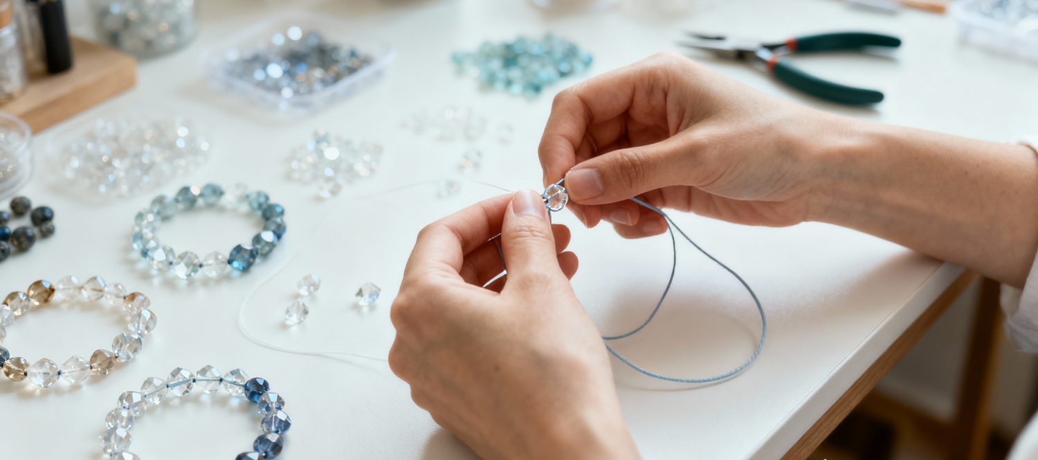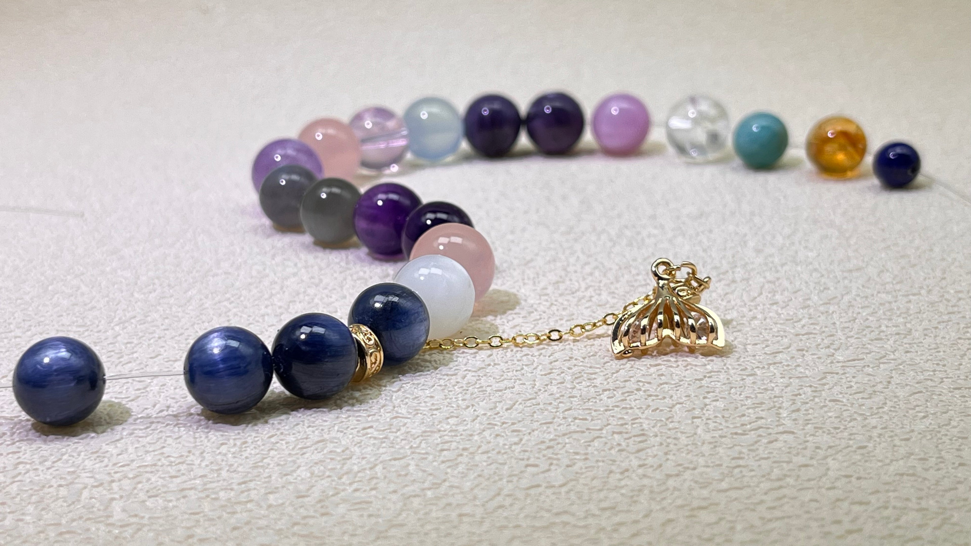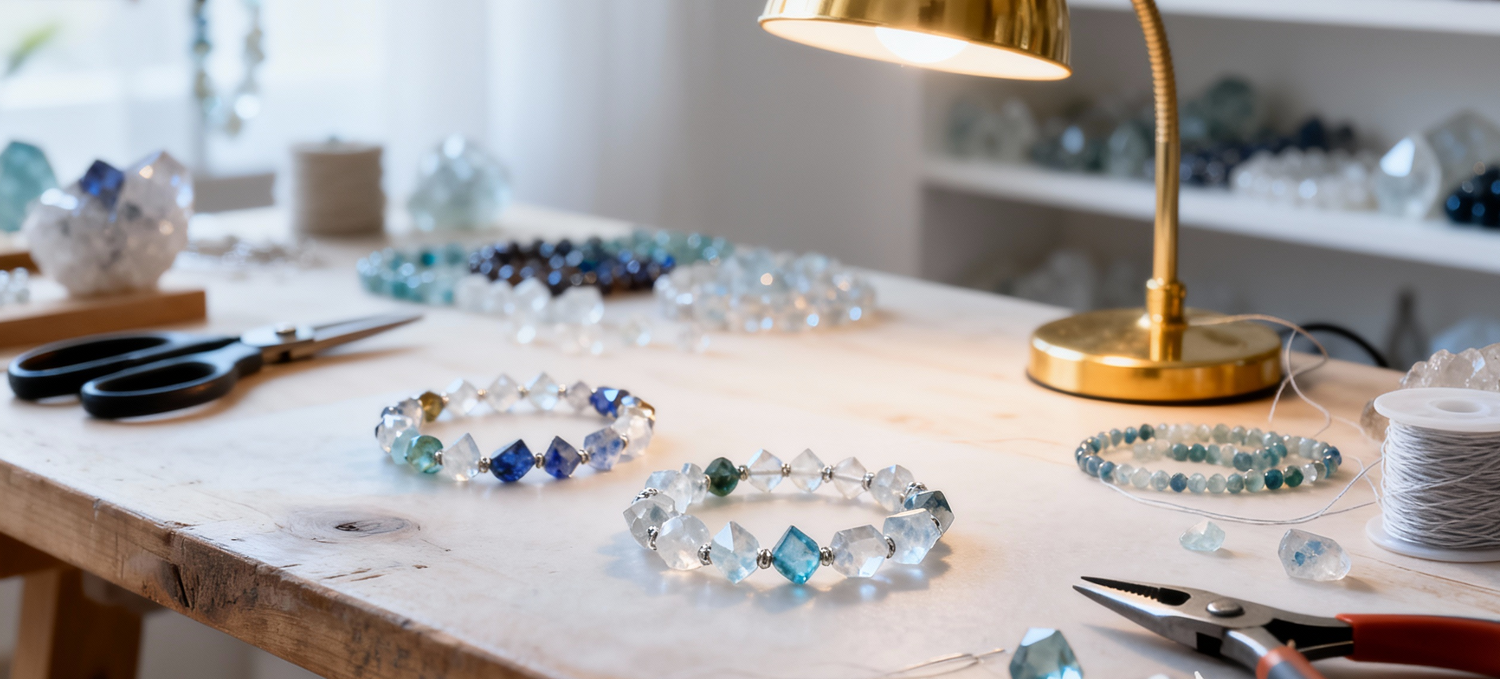 “Design your own crystal bracelet with our guidance. Choose your stones, colors, and charms to create a piece that reflects your energy and style.”